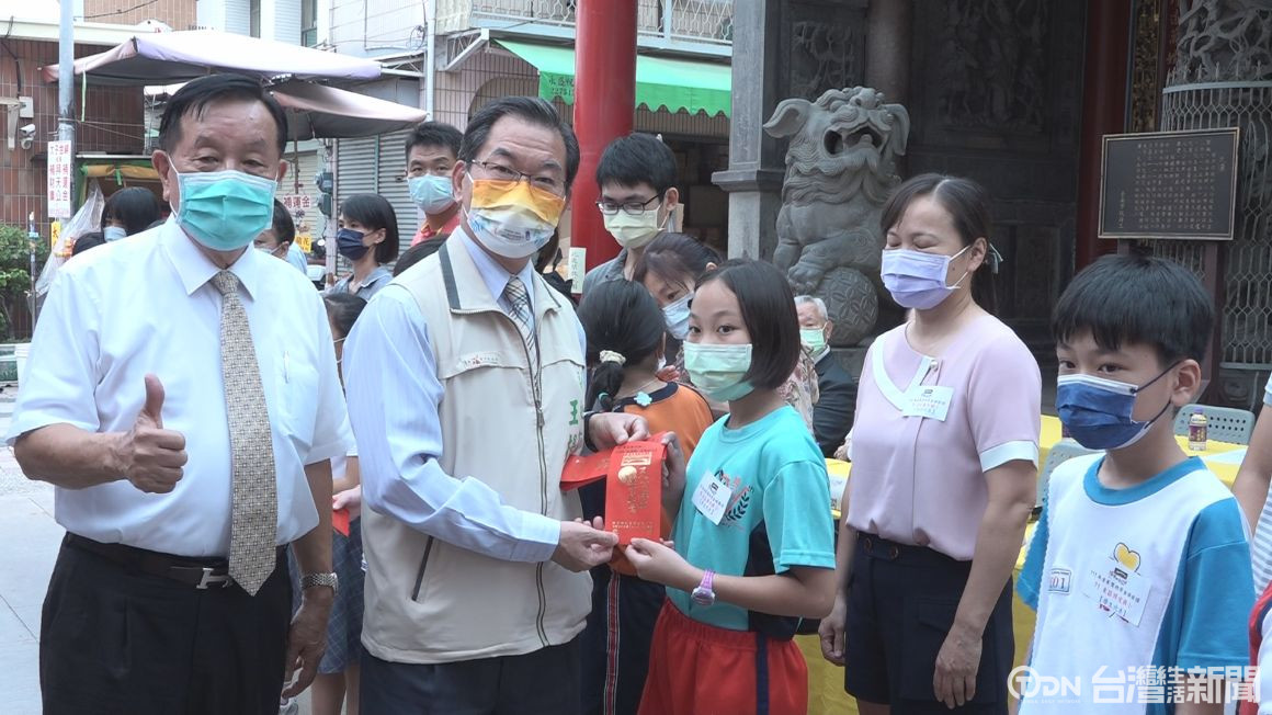 市府副秘書長王揚智代表市長黃偉哲前來頒贈感謝狀給首廟天壇,同時也鼓勵受贈的學生要認真讀書,未來有能力時也要回饋社會。