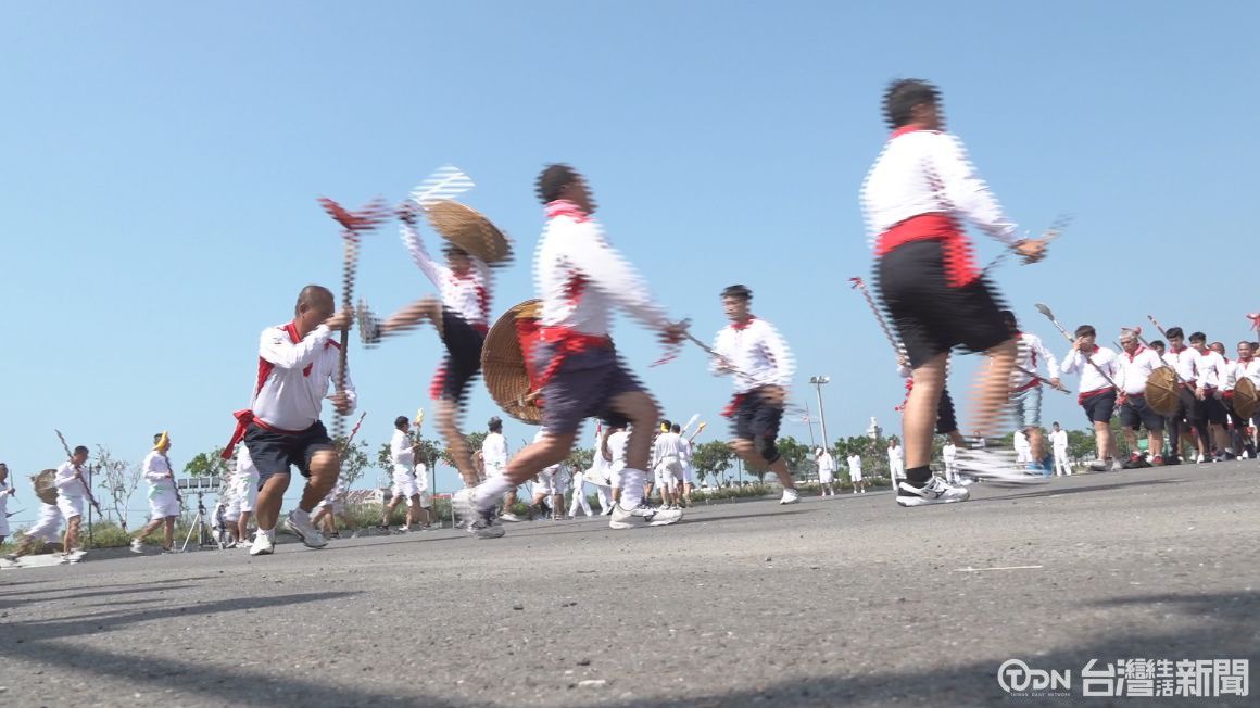 ▲國定民俗臺灣第一香西港香科,今年有3個武陣受邀請到國慶大會表演,3個陣頭超過200人在鹿耳門天后宮廣場前操演場面盛大/記者 蘇英豪攝。