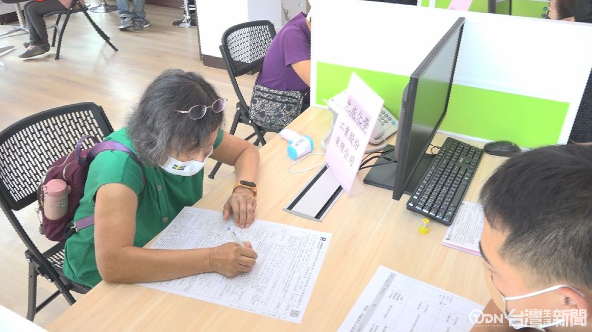 ▲臺南市首座銀髮人才服務據點啟用後,當日提供超過600個工作機會,讓高齢者填寫資料找工作/記者 蕭建緯攝
