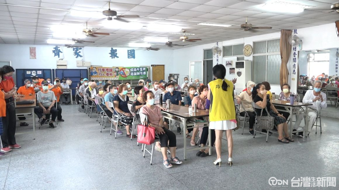 ▲特別邀請「路老師」林滿,教導現場60多位長輩正確的交通安全觀念/記者 莊詩亭攝
