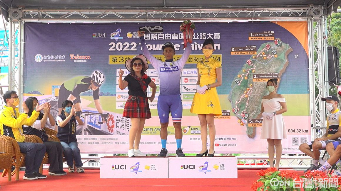 第三站沿途經過新竹、苗栗、台中,全程約156.5公里,沿途會有衝刺點與登山點,有望成為今年兵家必爭之關鍵地,地主中華隊「一哥」馮俊凱不負眾望,在夾縫中力爭上游,順利拿下亞洲冠軍的藍衫。