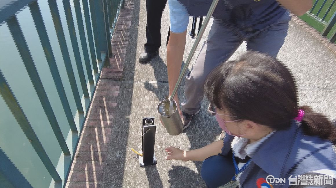 ▲日月潭某飯店被檢舉排放汙水,南投縣政府環保局再度前來取樣檢測/記者金芸亘攝