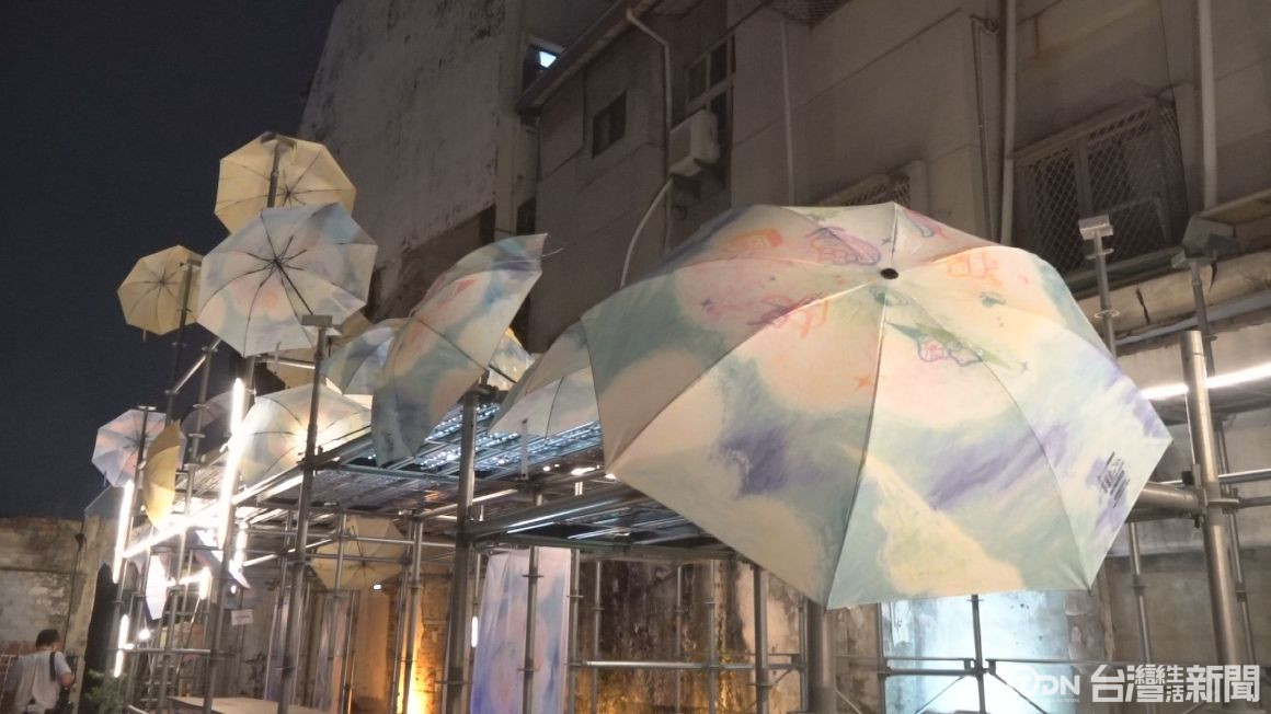 藝術流浪行動邀請插畫家洪于筑駐村展覽,以傘為主軸推出裝置藝術,而且到了晚上,還會加上燈光效果,讓這裡充滿著奇幻浪漫的氛圍,展期結束,彩繪花傘也將送給里民當成方便傘,希望居民在生活中,繼續以傘延續活動,在社群巷弄日常裡面,繼續藝術下去。