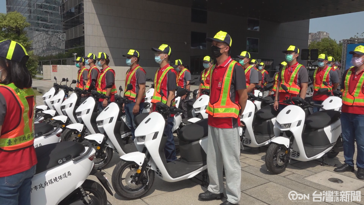 台中市環保局實踐「藍天白雲行動計畫」改善空污,編列1200萬元購置150輛電動機車,提供給第一線清潔隊執行環保勤務工作使用。市長盧秀燕指出,市府落實公務車輛使用低污染運具,預估每年可減少碳排約52.5公噸及節省126萬元油料費,也讓清潔隊公務電動機車數達到276輛,是六都最多。