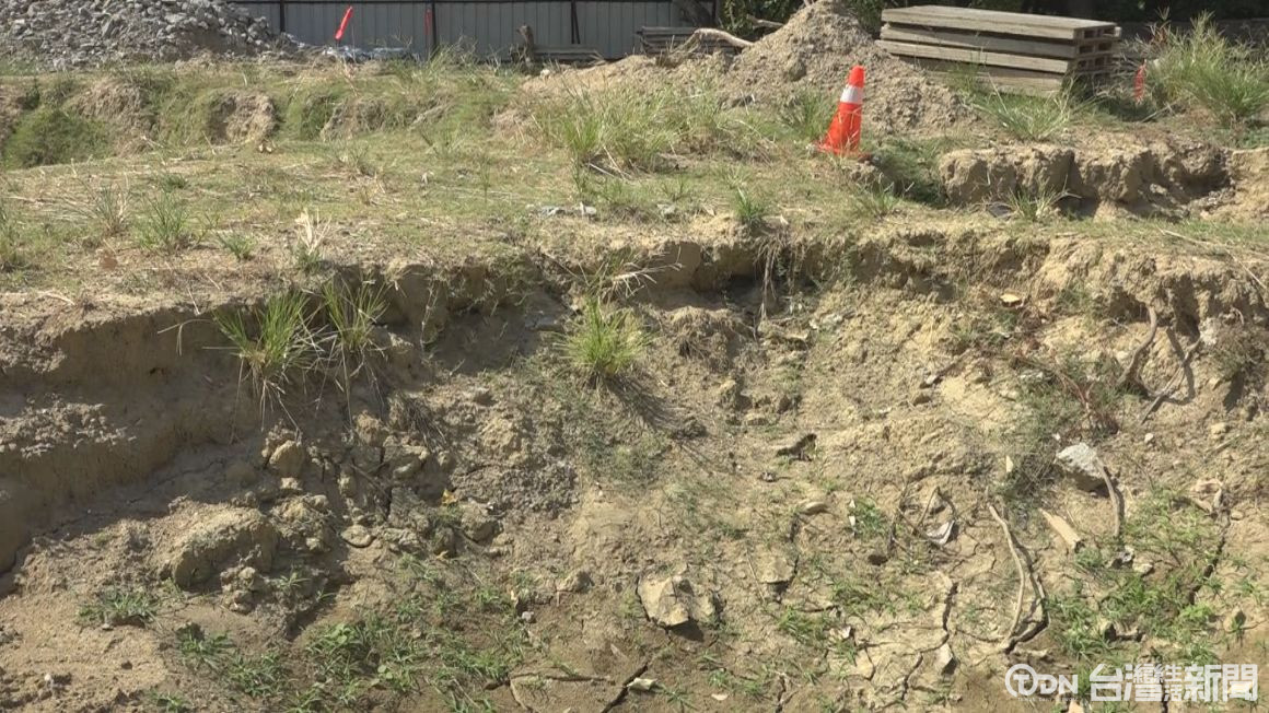 ▲永康公園兒童遊戲場改善工程,在施工現場發現挖到陶片古物與表面紅土歷史遺址/記者 蕭建緯攝