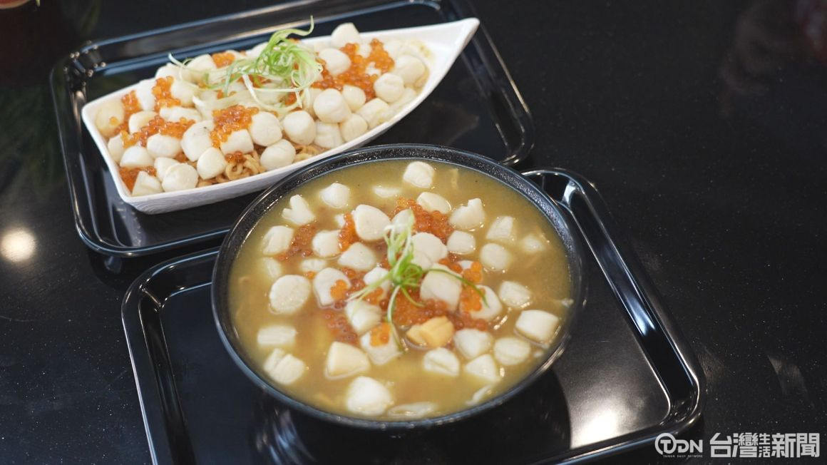 愛吃海鮮的民眾一定受不了這誘惑,有複合式餐飲業者插旗大里,看準干貝產季,順勢就還推出干貝鮭魚卵海鮮意麵,一整盤不管是乾的或湯的意麵,滿滿56顆大干貝,鋪上鮭魚卵,讓顧客直呼吃了快痛風。
