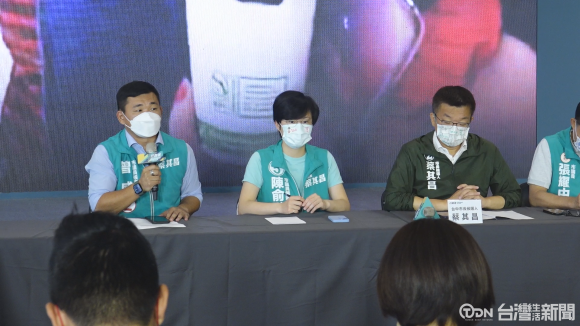 ▲民進黨台中市長候選人蔡其昌舉辦記者會,抨擊國民黨對手盧秀燕團隊動用市府公務員及包商進行政治偵防/記者 楊宗桓攝
