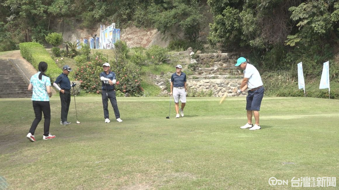▲選手們全神貫注,為一年一度的市長盃業餘高爾夫錦標賽進行開球/記者 莊詩亭攝