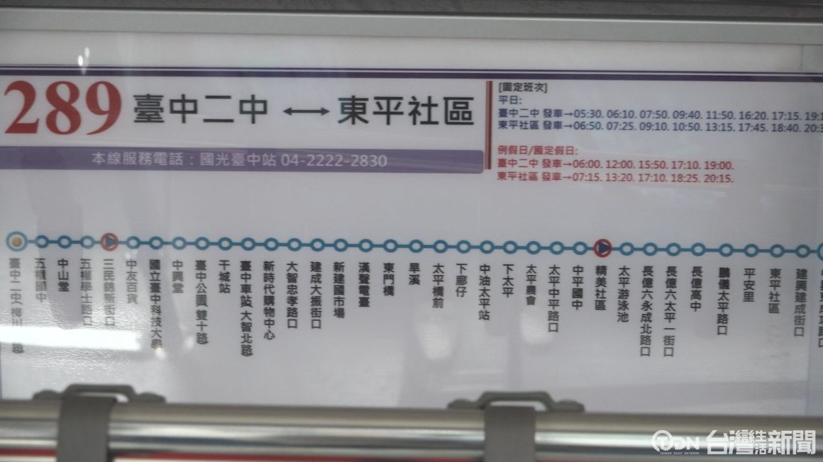 ▲289路公車將新增停靠建興建成街口及中興東成功路口,沿路行經台中火車站、一中商圈、中國醫等等/記者 莊詩亭攝