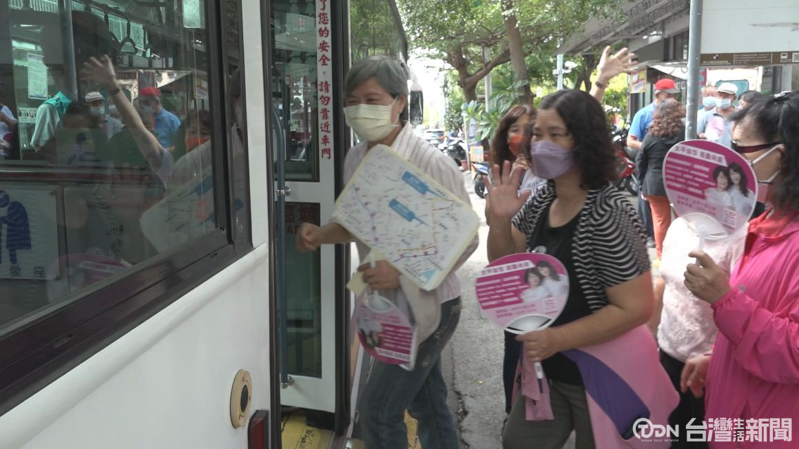 ▲地方民眾開心地踏上289路公車/記者 莊詩亭攝