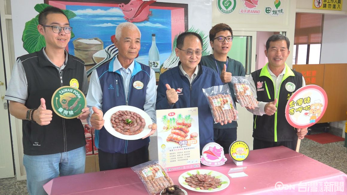 ▲台中市大安區農會特別與新社區農會合作,推出"香菇香腸"要來搶攻市場/記者 陳柏翰攝