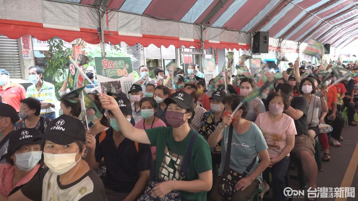 ▲現場湧入滿滿人潮,旗海飄揚凍蒜聲不斷/記者 莊詩亭攝