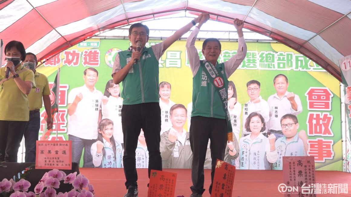 ▲市議員鄭功進與蔡其昌聯合競選總部成立,立委黃國書現身力挺/記者 莊詩亭攝