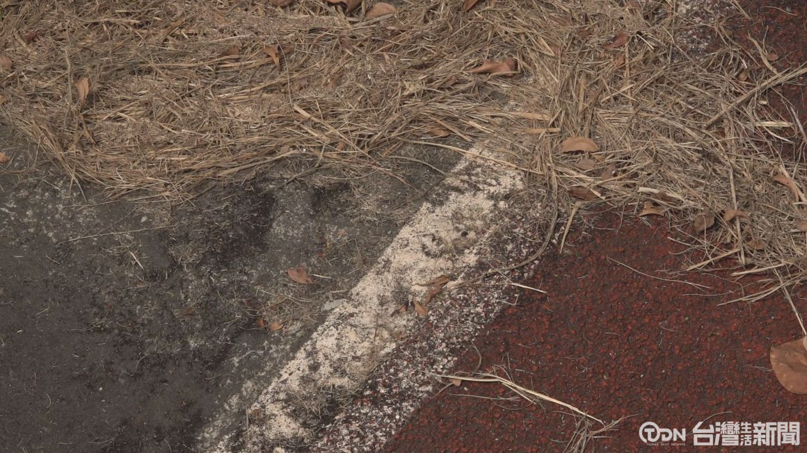 ▲PU跑道因為樹根竄入而造成隆起、龜裂/記者 陳昭安攝