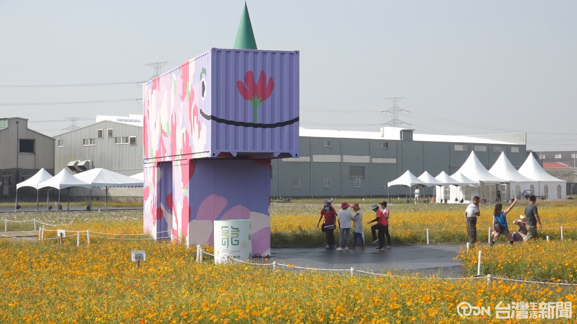 為了幫百周年慶活動暖場,近期龍井區農會在波斯菊花海中,放置4座「龍景豐獸」大型彩繪貨櫃裝置藝術,可愛亮眼的外型吸引許多民眾目光,農會表示今年迎來百周年,結合稻田轉作波斯菊等景觀綠肥作物,主題圍繞農會百年有成,喚醒座落於花海的「龍景豐獸」,期望活絡龍井農業產業。