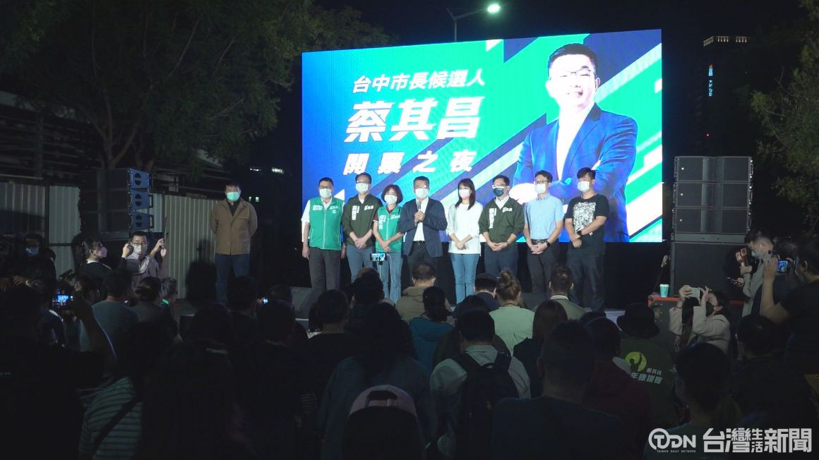 晚間6點50分,民進黨台中市長候選人蔡其昌,在團隊的陪同下,上台發表敗選感言,他表示對不起所有支持蔡其昌的市民朋友,行動派的團隊會繼續來檢討,一定會更加努力!