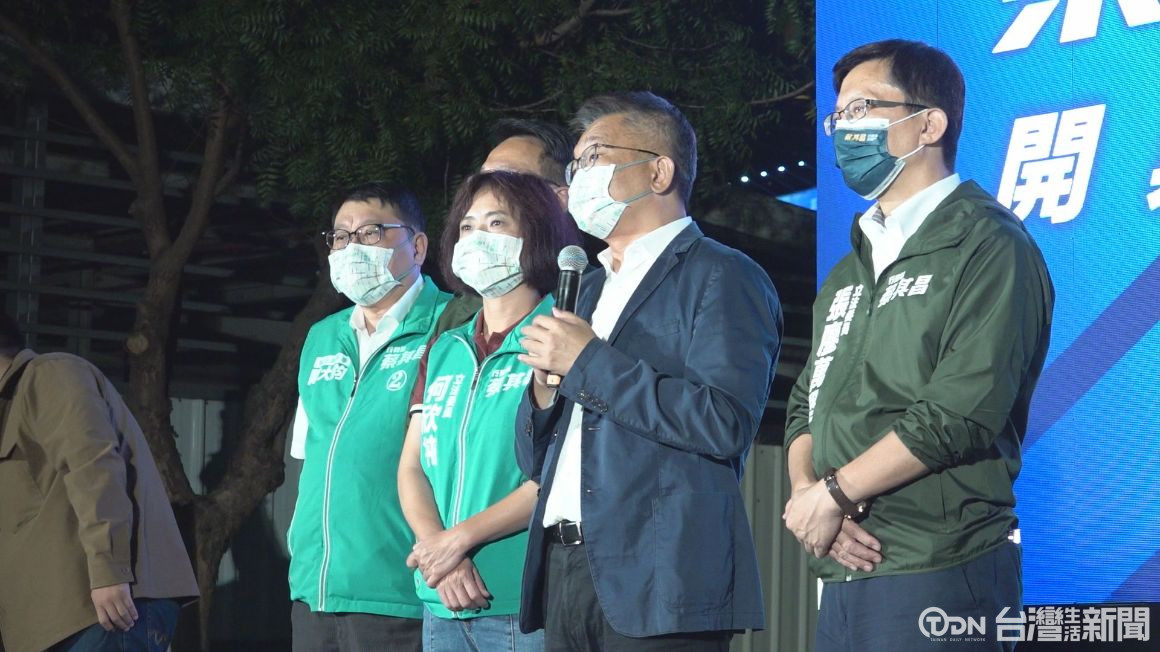 ▲在團隊的陪同下,蔡其昌發表敗選感言,也大方恭喜對手/記者 林佳樺攝