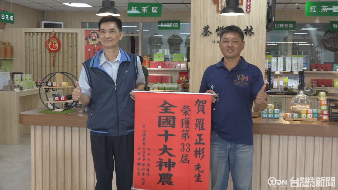 ▲茶農羅正彬(右)榮獲全國十大神農獎/記者徐旻鈺 攝