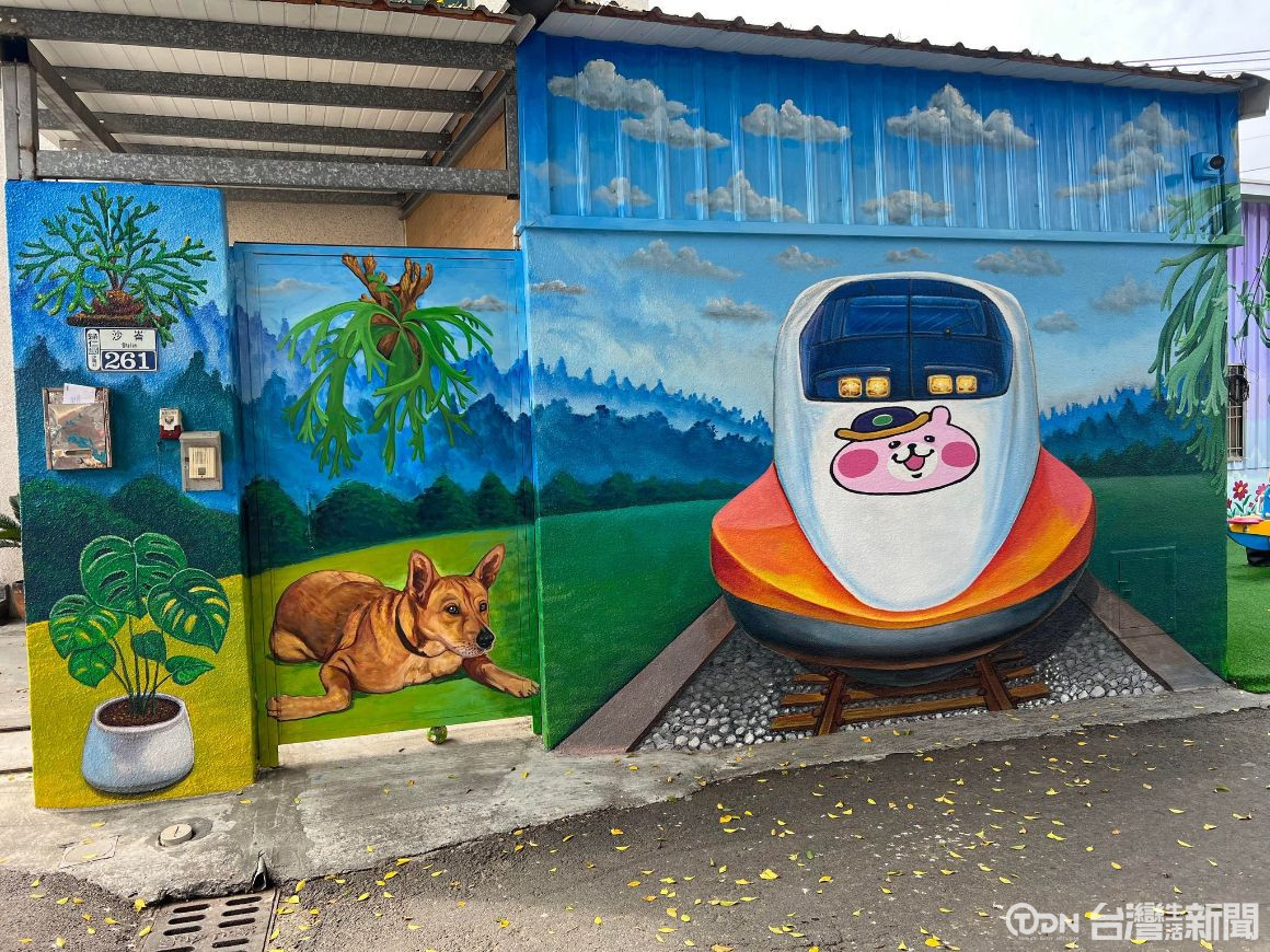 現場彩繪作品的圖案,除了原本的古早玩具以外,現在也增加了高鐵列車、寵物以及植物等豐富的主題。