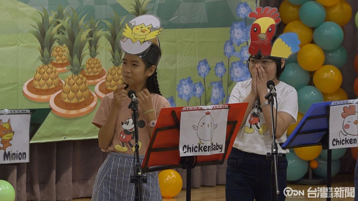 學生在舞台上表演英語劇場,不但看得到彼此表情,也能更了解在說什麼,中央宣佈即日起放寬戴口罩限制,室外不用戴口罩,校園則區分室內外,室外解禁,室內上課仍需全程配戴口罩。
