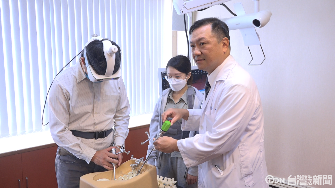 ▲院方在手術中使用AR眼鏡,讓脊椎周圍的動脈、器官全部精準動態呈現在執刀醫師眼前/記者 楊宗桓攝
