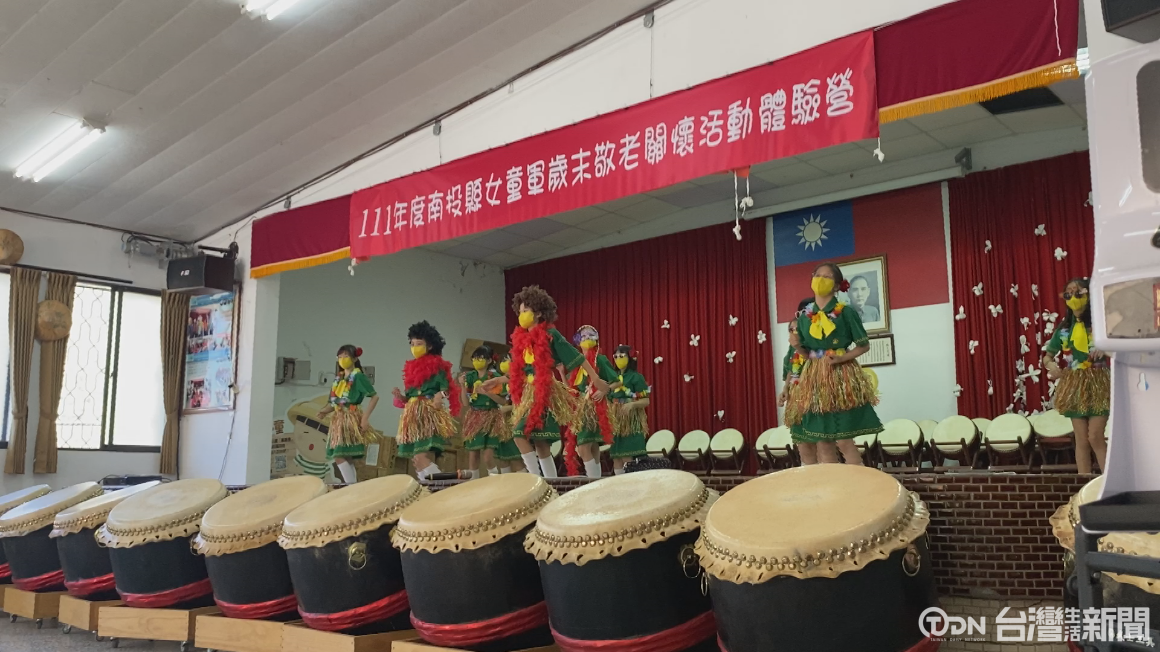 南投縣女童軍會來到水里鄉上安社區的關懷據點舉辦敬老關懷活動,社區長輩特別帶來練習許久的太鼓表演,歡迎女童軍的到來。