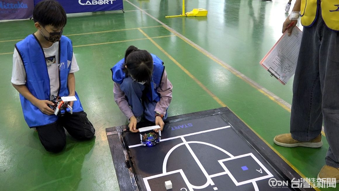 倒數聲後,學生按下啟動鈕,讓自製的機器人進行極地救援,將任務道具移動至出發區,在移動指定位置即可完成,大里家長會長協會這天在霧峰農工舉辦台中市國中小學科學創意趣味競賽,吸引100多位學子參與。