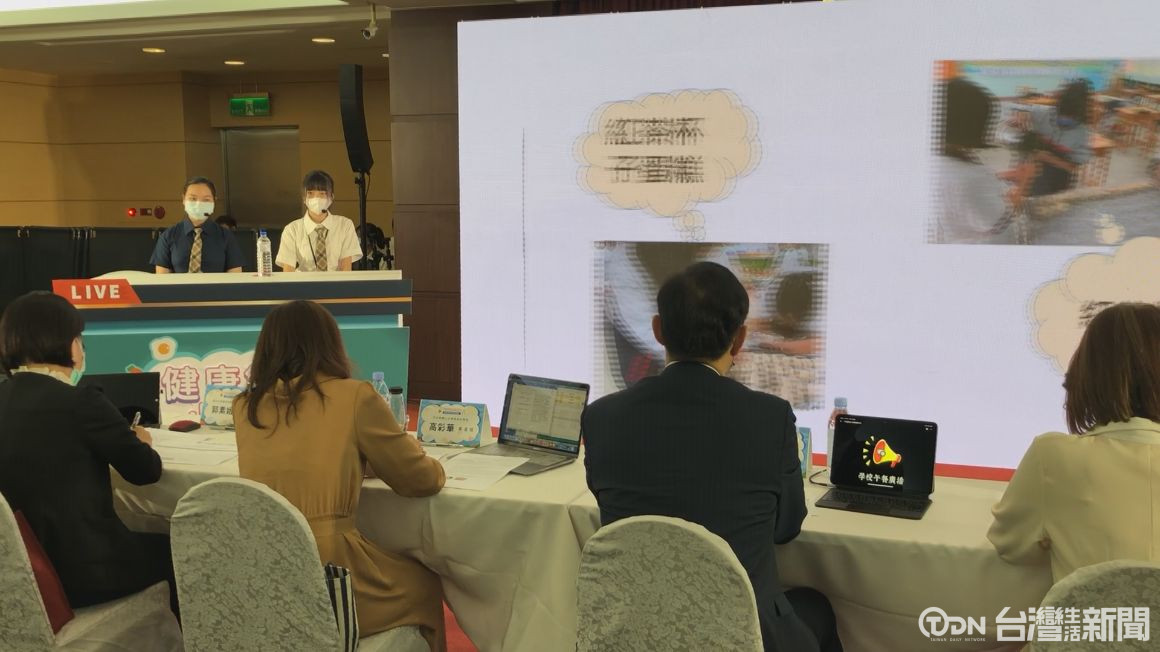 魚池國中學生陳宜禎、陳星語,在比賽主播台上生動活潑的表現,讓他們獲得教育部國教署「健康飲食小主播」全國第三名的成績。