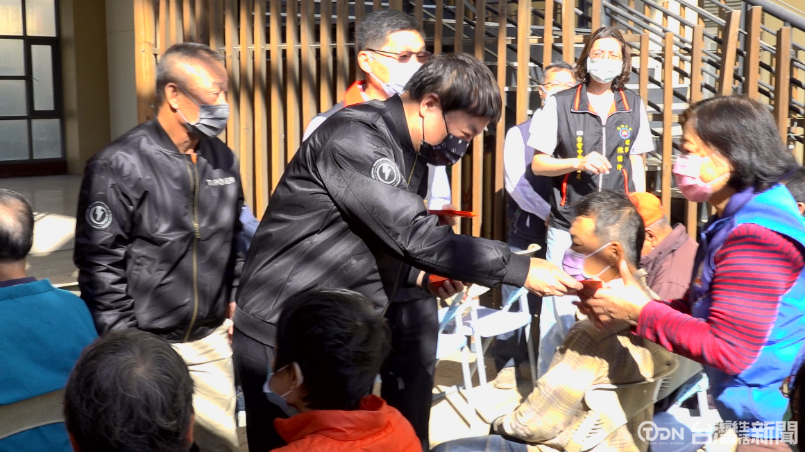 ▲廠長與里長親自將慰問金送到每位長者手中/記者 楊宗桓攝
