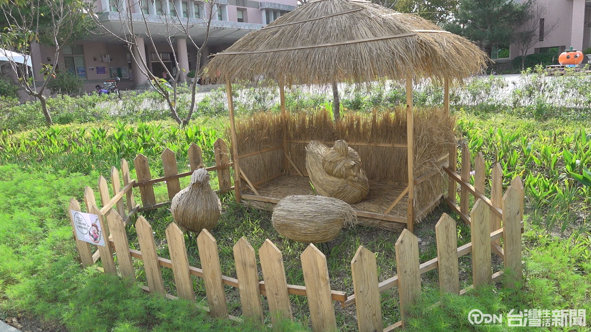 ▲用稻草編織而成的雞舍,模樣相當可愛/記者 陳昭安攝