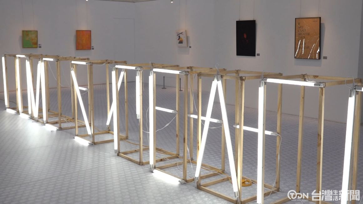 ▲鮮明炫目燈管裝置藝術「LOVE & PEACE」/記者 李晉仰攝