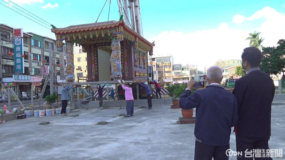▲難得可以看到現場組裝新廟,吸引許多信眾們跑來觀看/記者 賴秋峰攝