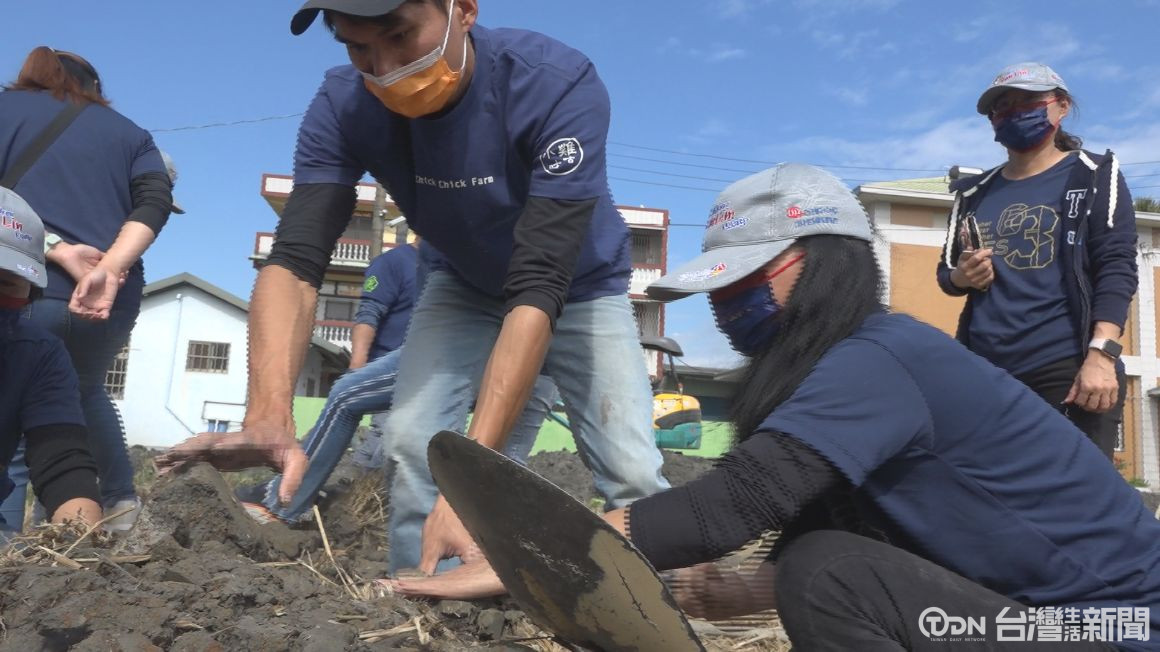 ▲鎮南國小志工體驗焢窯的過程/記者徐旻鈺 攝