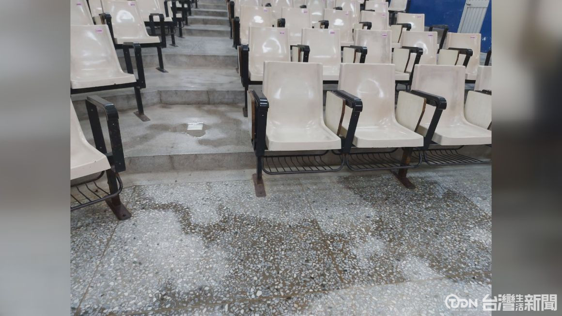 校方表示,因為教室積水問題,不僅造成內牆水泥漆面剝落,壁癌四處可見,桌椅也出現生鏽狀況,視聽設備還因為受潮,造成使用上不時出現故障,為此立法院副院長蔡其昌這天也邀集相關單位到場會勘。