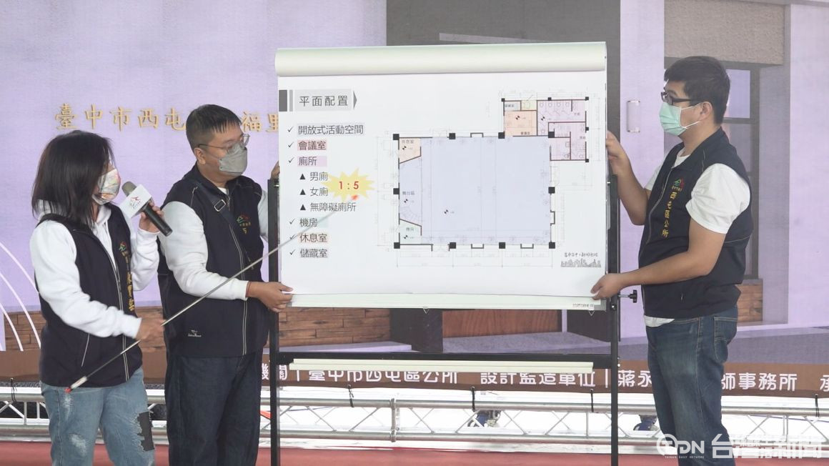 西屯區長透過簡報和大家說明廣福里活動中心的興建藍圖,這是台中市第一座橋下活動中心興建案,地方相當關心,市府預計投入1400多萬建造。
