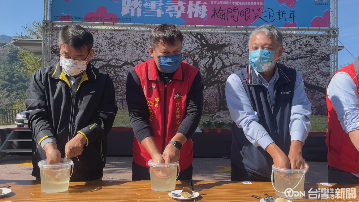 ▲信義鄉農會梅子夢工廠舉辦的踏雪尋梅開鑼日,今年新增了梅子愛玉搓搓樂的DIY體驗/記者金芸亘攝