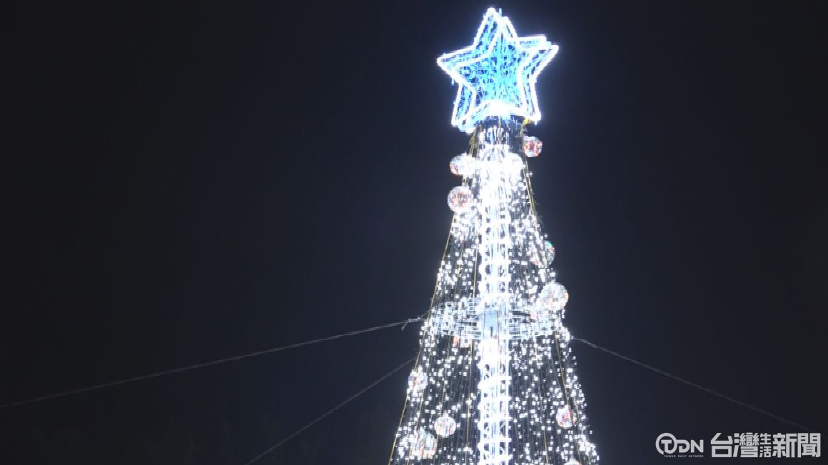 ▲豎立於水面上的聖誕樹有別於以往更有氣氛/記者李偉廷攝
