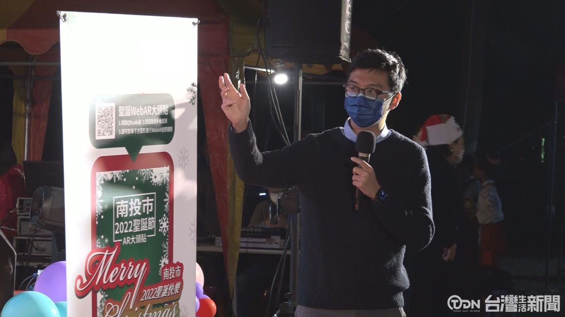 今年南投市公所特別將聖誕燈具從圓環移到水池上展示,昨日在寒冬中熱鬧展開,公所準備南投意麵品嘗,結合國小才藝扯鈴、口琴,以及國樂團、合唱團表演,這次聖誕祈福點燈,關懷南投市民,期盼在疫情過後,用愛點亮南投天空。