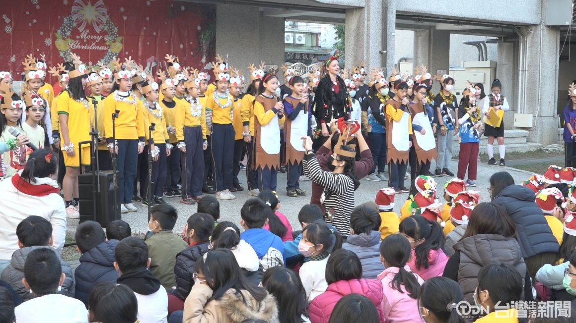 除了有超大聖誕樹設立在川堂之外, 太平國小這天也舉辦一系列的聖誕活動,安排學校直笛隊、口琴隊帶來聖誕歌曲表演,現場更發表雙語教學成果,讓校園內充滿聖誕氛圍。