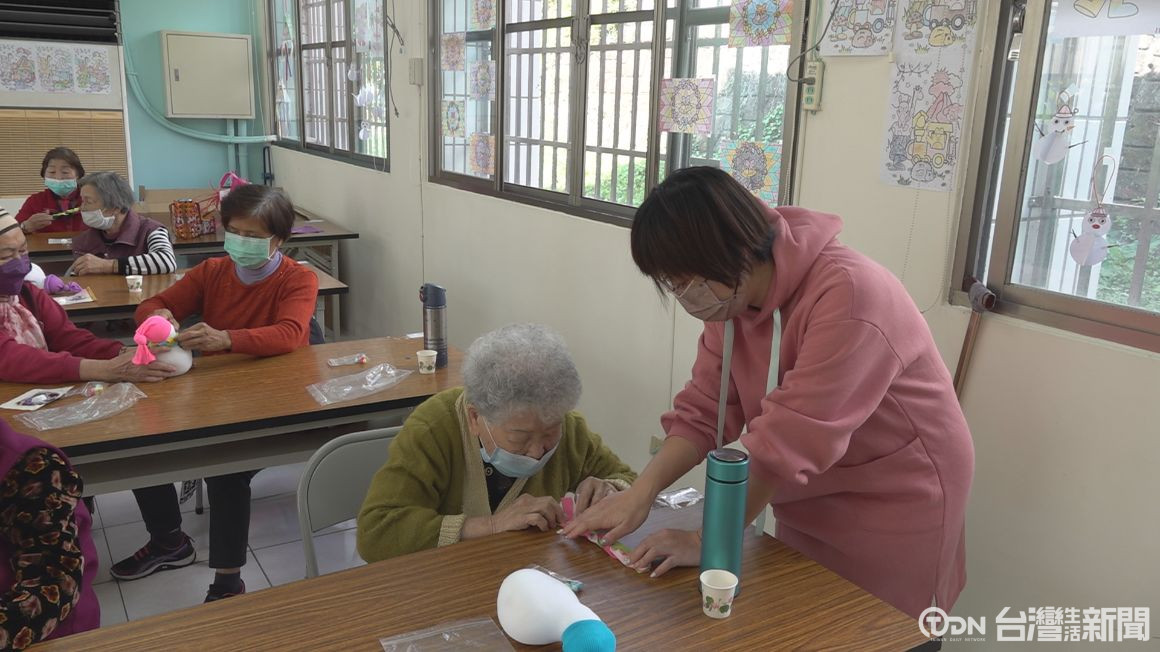 ▲圖為帶著老人家動手操作,並且透過彩繪以及黏貼,提升藝術美感/記者林妤昕攝