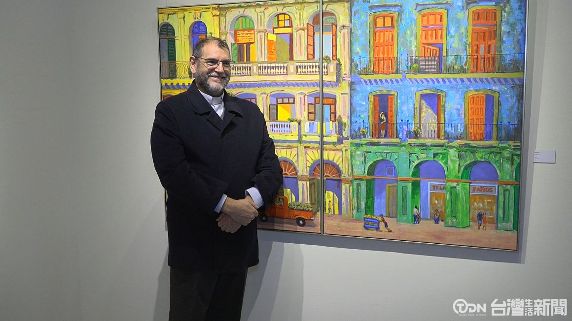 ▲西班牙籍神父沈拉蒙,也同時在校內舉辦個人畫展/記者 陳柏翰攝