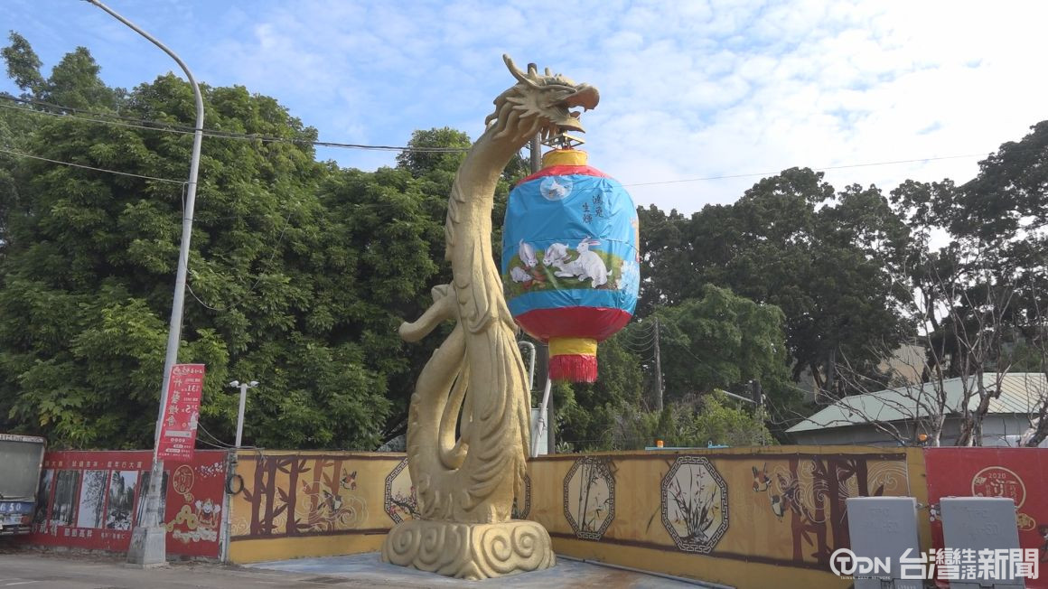 ▲金龍嘴中咬著大型的花燈,畫滿兔子與吉祥話看起來相當喜氣/記者徐旻鈺 攝