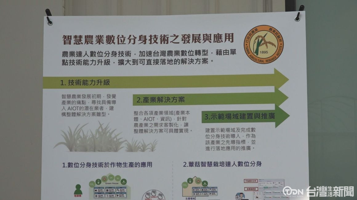 推動智慧農業,行政院農業委員會打造「智慧栽培達人數位分身」,將農業技術以數位化方式進行經驗保留及收集,這天就宣布正式在農試所育成基地建立設施蔬果栽培達人數為分身示範基地,將蔬果溫室導入該技術,期望提高青年回鄉無縫銜接前輩達人經驗。