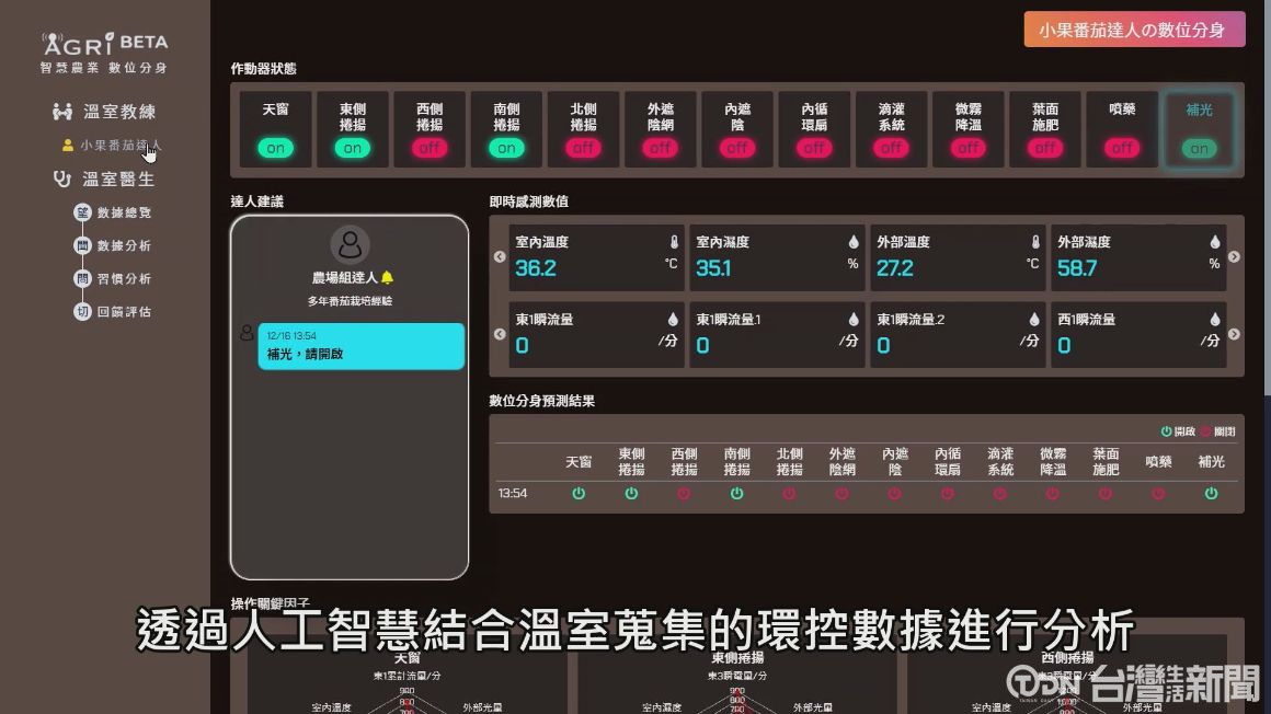 智慧栽培達人數位分身,是將農業技術以數位化方式進行經驗保留及大數據收集,像是溫室的溫度、濕度,,都可以即時掌握,希望藉此快速複製達人經驗,鼓勵更多青農回鄉。