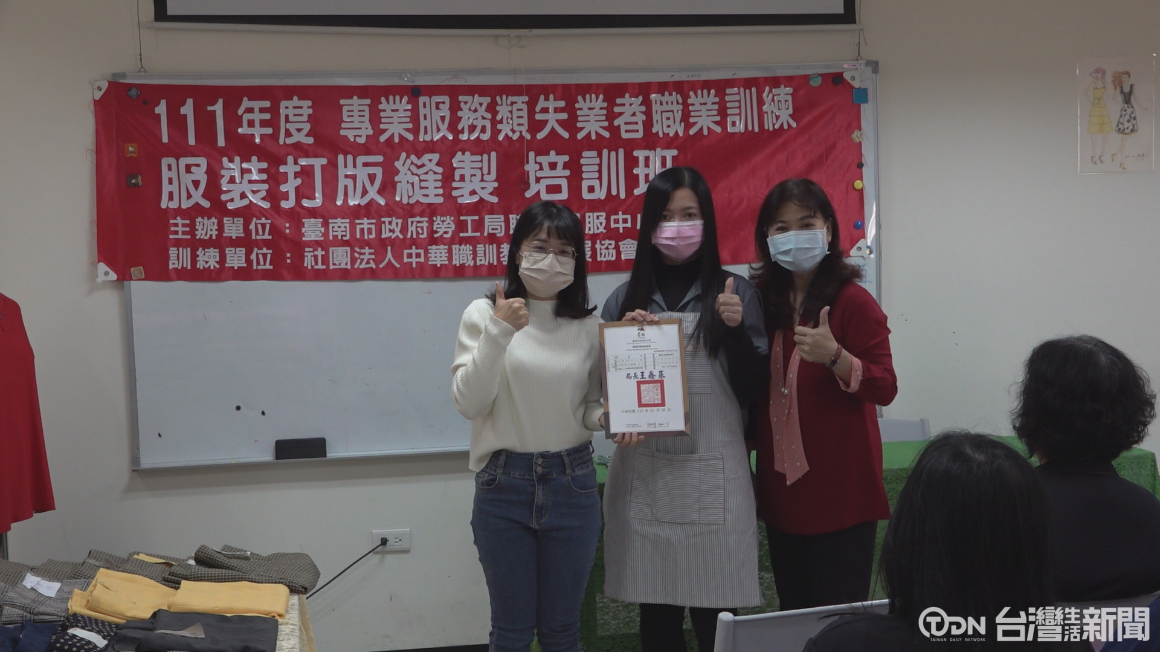 臺南市政府勞工局為了要幫助失業民眾再次回歸職場,特別委託社團法人中華職訓教育發展協會來協助開辦服裝打版縫製的課程,希望透過落實的實務教學,來提升學員競爭力,經過大家都認真地的學習課程內容後,特別在5號這天在協會訓練中心來舉辦結訓典禮。