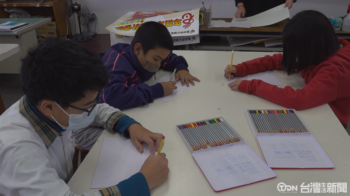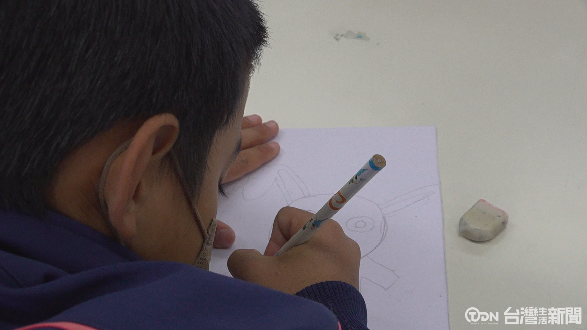 ▲同學專心的在畫紙上描繪出天馬行空的想像,畫出代表過年的意象/記者 陳昭安攝