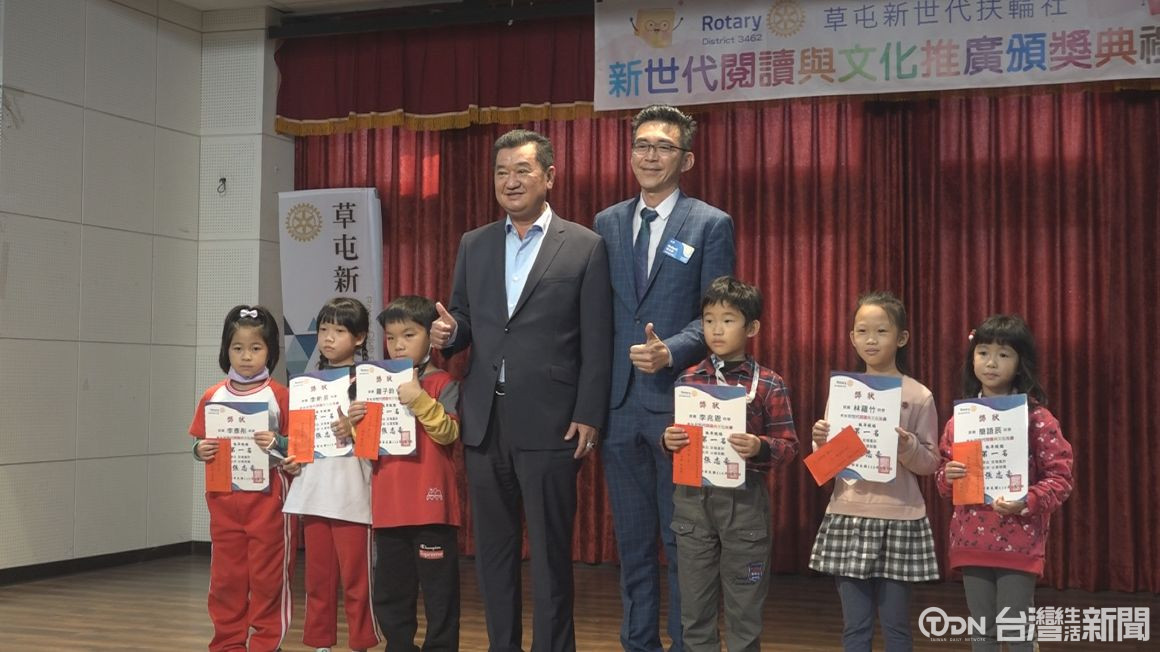 草屯新世代扶輪社舉辦首次的閱讀與文化推廣活動,選定炎峰、敦和、富功、僑光國小,學生參與踴躍,經過評選後,選出前三名和佳作,今天進行頒獎典禮,將近200位學生接受表揚。