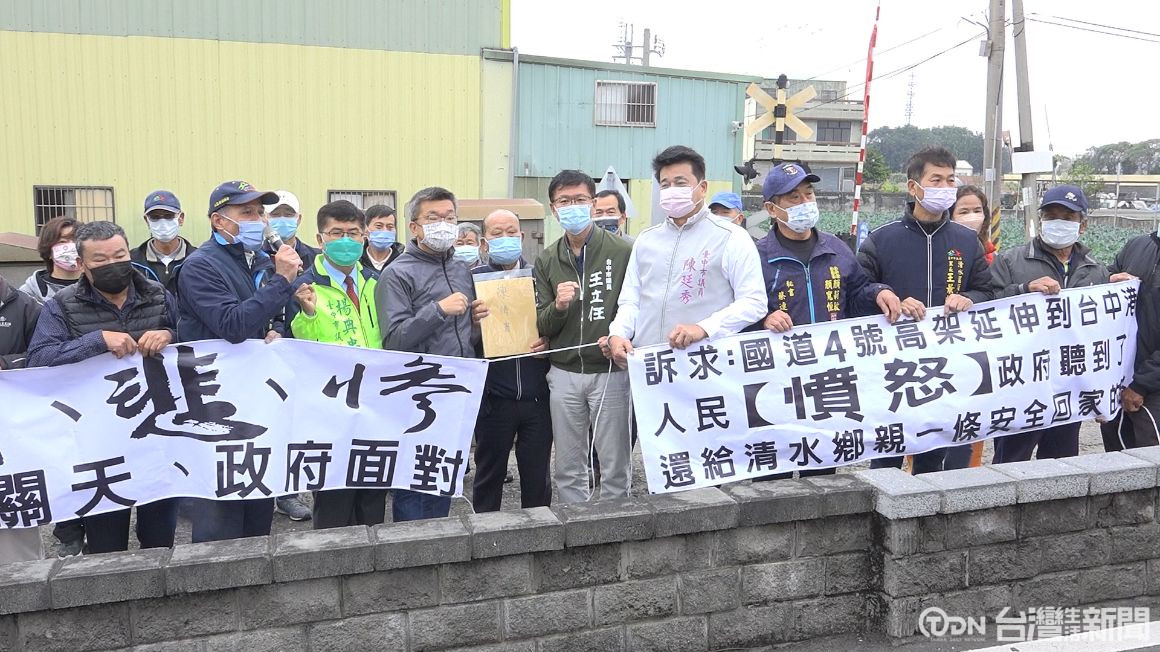 國道4號西向清水端,是大貨車通往台中港區主要道路,近年大小車禍不斷,尤其去年12月27號,發生一起8車連環大車禍,造成1死3傷,這天交通部公路總局特別邀集民代與相關單位到場會勘,現場十多位居民也到場拉起白布條抗議,並遞上陳情書,希望爭取國道四號高架延伸到台中港,讓車禍悲劇不再發生。