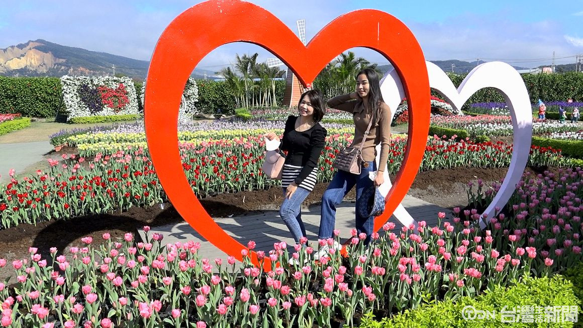 粉嫩嬌貴的鬱金香,迎風搖曳,在園區內形成一片繽紛花海,吸引遊客拍照打卡,后里知名觀光花市,每年都會在冬季舉辦鬱金香花季,今年同樣從荷蘭引進30萬株、高達60種不同品種的鬱金香,要讓民眾不用出國,也能有異國感受。