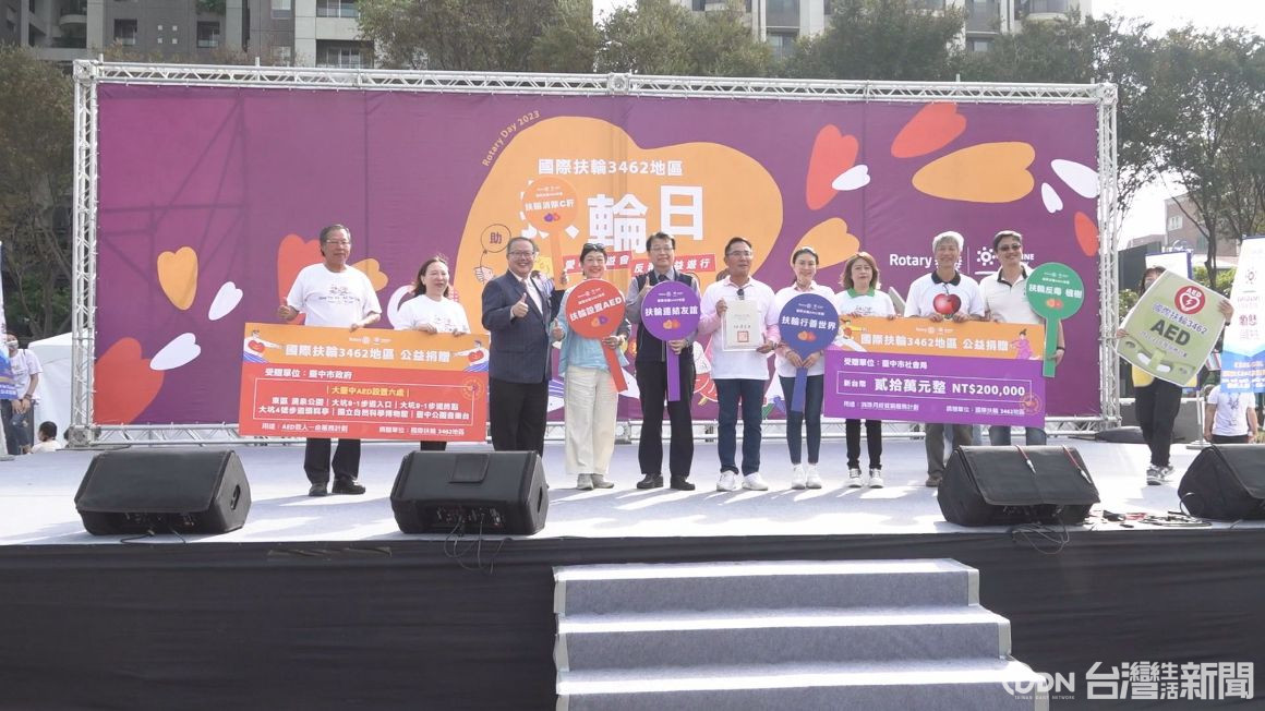 國際扶輪以助人行善為宗旨,這天在市民廣場前,舉辦「扶輪日活動」,匯集3462地區涵蓋臺中、彰化、南投等地區的扶輪社,舉辦愛心園遊會及反毒公益大遊行,並在捐贈一批AED及協助善款作為台中市弱勢婦女及家庭消弭月經貧窮計畫,在歲末年終之際傳遞愛與溫暖,提升社會正向力量。